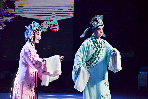 晚會上演了種類豐富的河南地方戲種。豫劇現(xiàn)代經(jīng)典曲目《朝陽溝》《倒霉大叔的婚事》《李雙雙》,傳統(tǒng)經(jīng)典曲目《鬧天宮》《梵王宮·梳妝》《秦雪梅·觀文》;百花爭艷的地方其他劇目,如曲劇《風(fēng)雪配·裝箱》、四平調(diào)《小包公·辭皇王赴任離汴京》、道情《王金豆借糧·家住河南太康縣》、越調(diào)《收姜維·一支將令往下傳》;曲胡合奏《新年大起板》二胡獨奏《故園情》……一曲曲、一段段圓潤優(yōu)美的唱腔在會場上回蕩,令現(xiàn)場聽眾為地方經(jīng)典藝術(shù)動容。