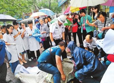 “快!找個衣服給孩子蓋住?!辈恢l喊了一聲。由于下雨天冷,光溜溜的小家伙凍得渾身發(fā)紫。話音剛落,沿街門店的商戶楊女士健步如飛,回到店里把自家孩子的毛毯拿過來,熱心市民有的還把衣服脫掉……毛巾、毛毯、衣服從人縫里送進來,一層又一層地裹住嬰兒。當120急救車趕到現(xiàn)場,眾人把產婦抬上了救護車,所有人長長地出了口氣。